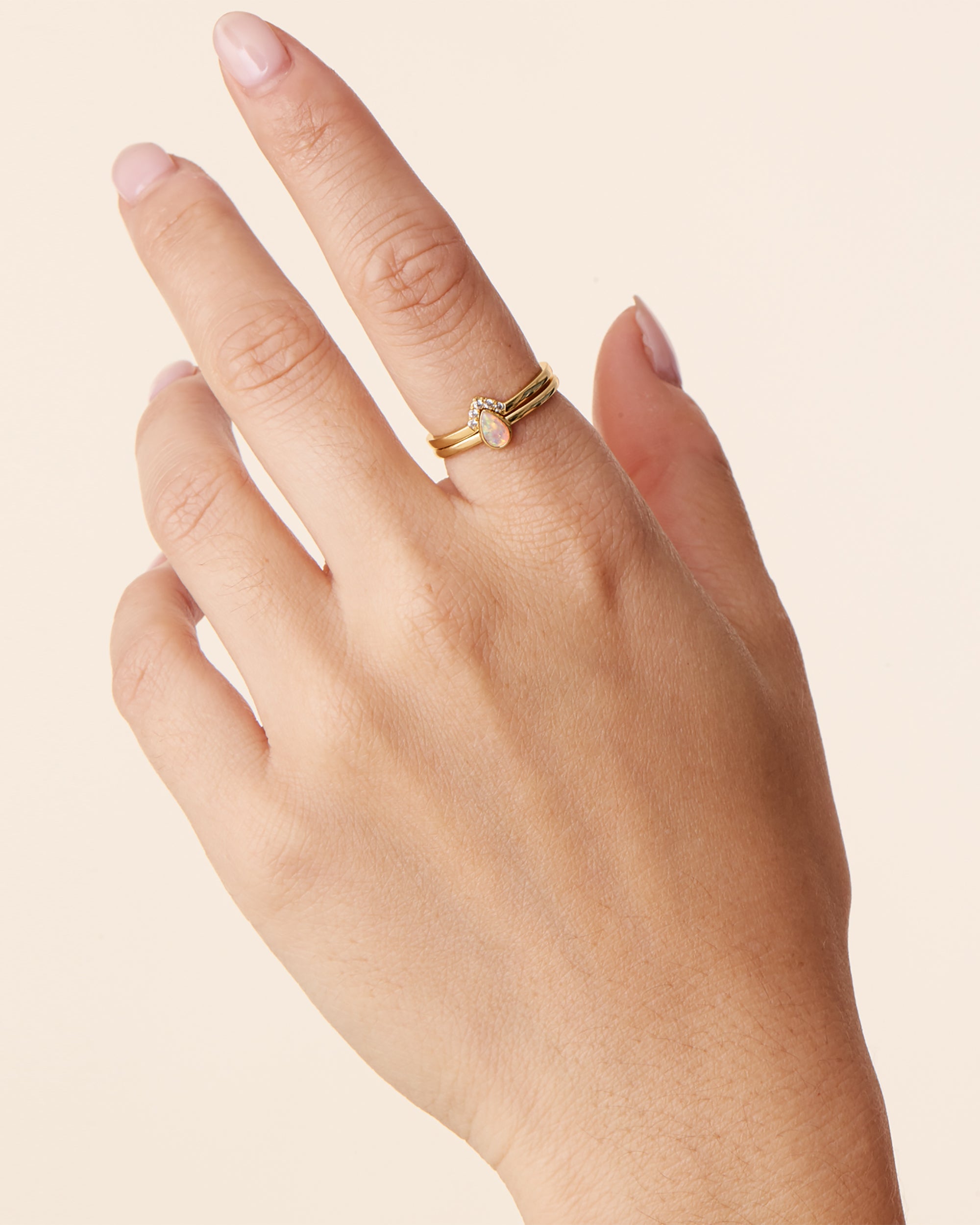 A simple stacked ring combo that you will love to put on everyday. Made with statement-making opals, and the highest grade Cubic Zirconia crystals that shine just like real diamonds.