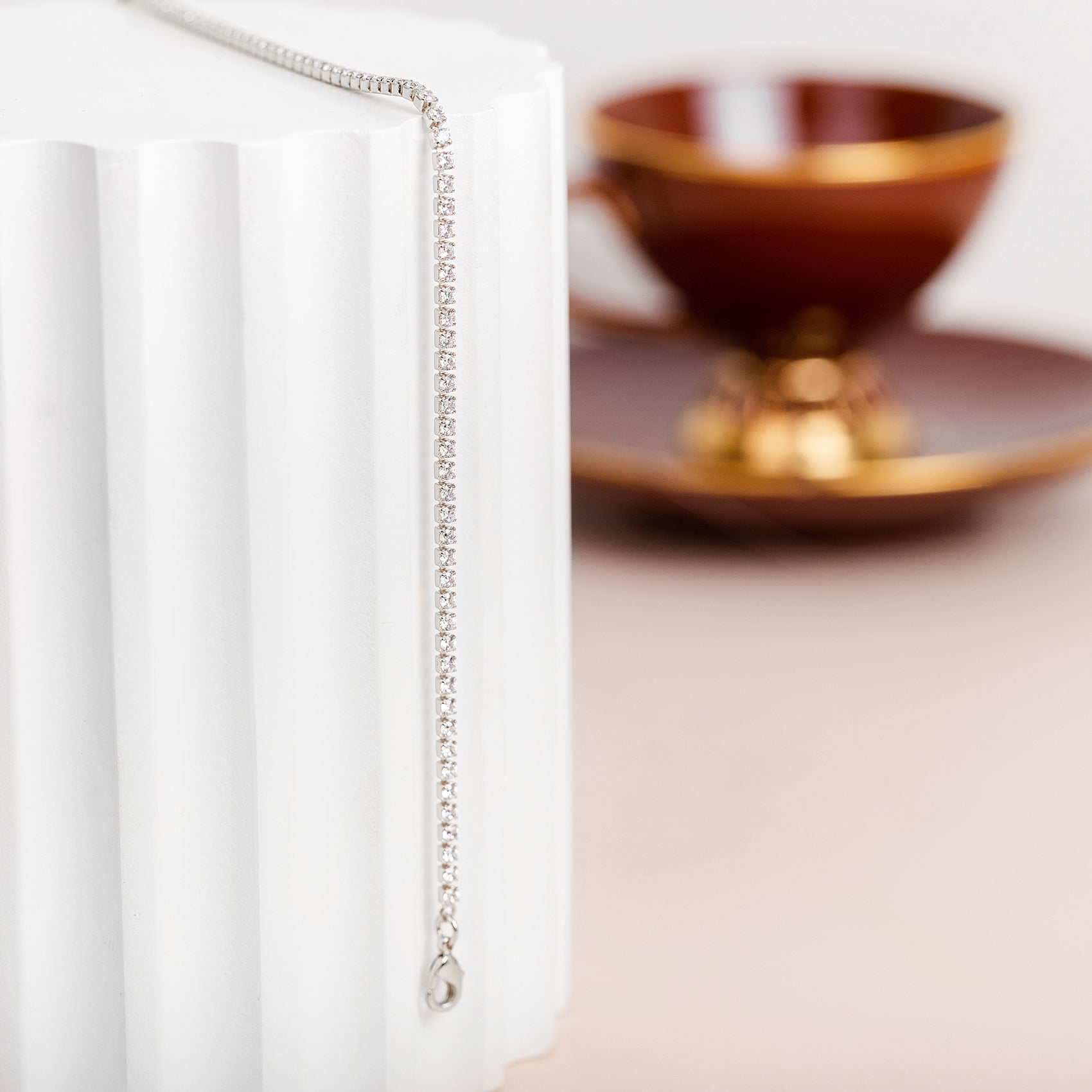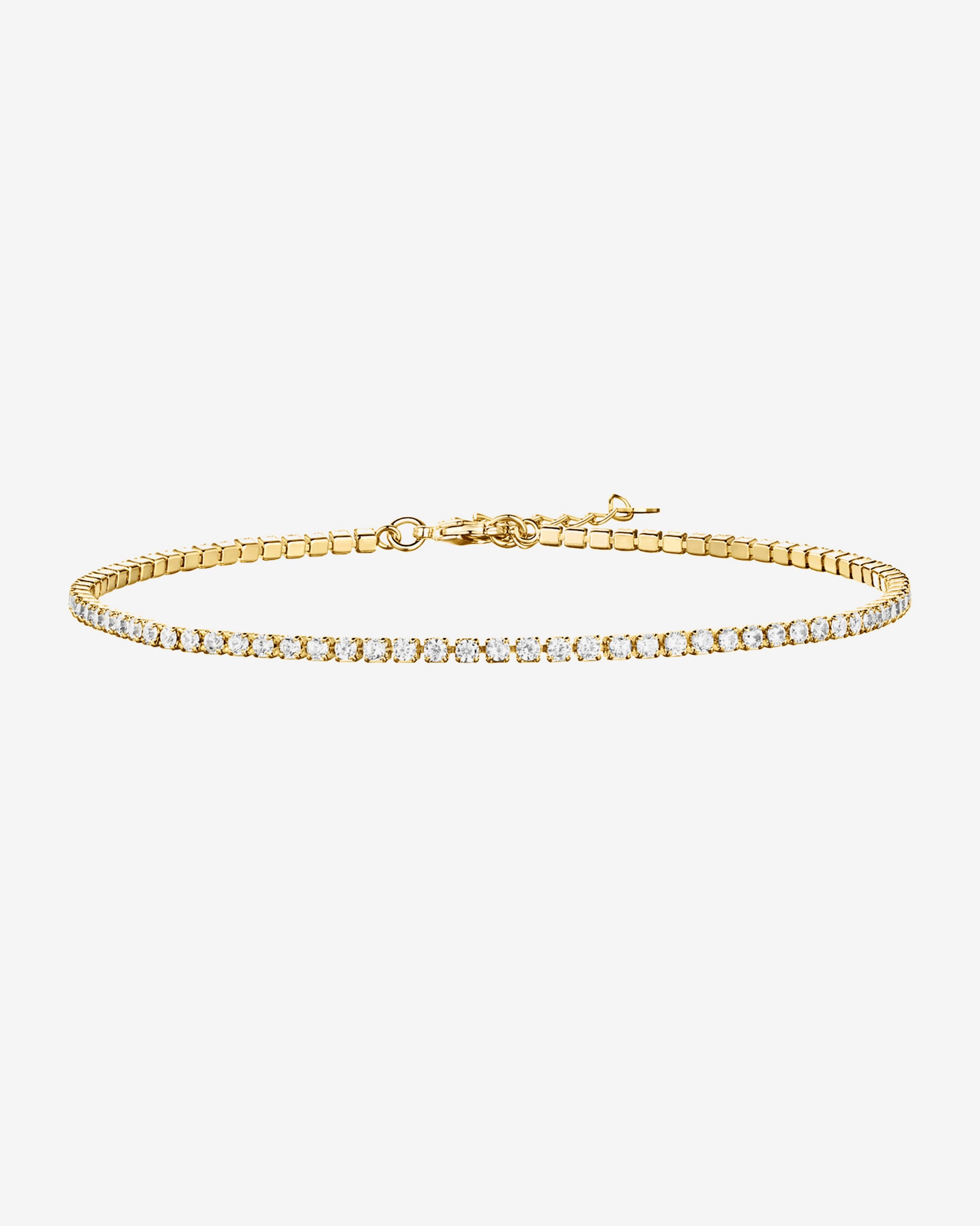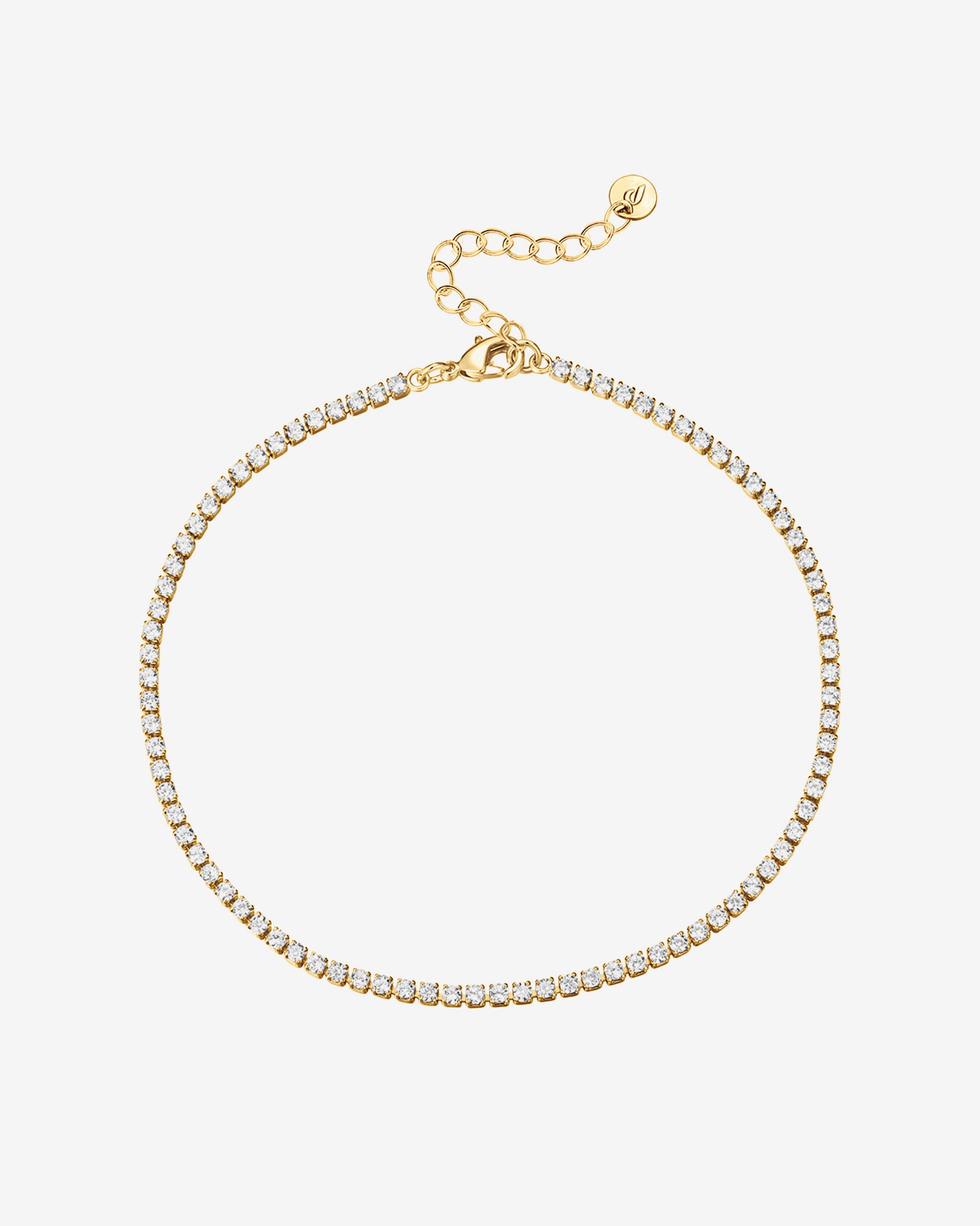 Stunning sparkle, at your feet. The PAVOI 14K gold-plated cubic zirconia anklet makes a fab statement. A take on the classic tennis bracelet, this simulated diamond anklet looks chic worn barefoot or with your favorite sandals—the styling possibilities are endless.